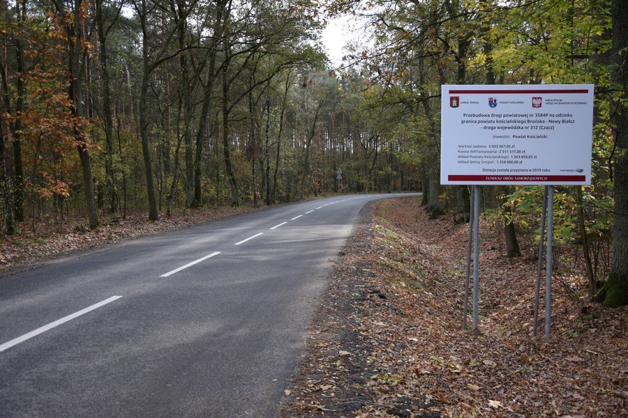 Zakończyły się prace budowlane przy drogi powiatowej nr 3584P na odcinku granica powiatu kościańskiego - Brońsko - Nowy Białcz - droga wojewódzka nr 312 (Czacz).